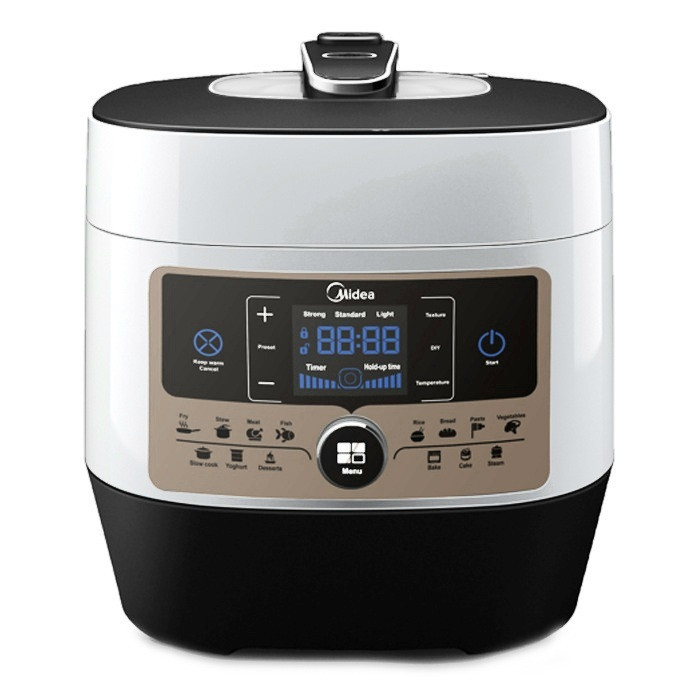 کمپانی Midea یکی از بزرگترین برندهای صنعتی کشور چین در تولید لوازم خانگی می باشد. این شرکت به دلیل داشتن محصولات درجه یک باعث افزایش حجم تولیدات خود و عرضه آن به سایر کشورهای جهان شده است. از تولیدات منحصر به فرد این برند می توان به زودپز مدل MY-SS6062 اشاره کرد. دستگاه های مشابه این محصول به دلیل داشتن چندین برنامه پخت به صورت پیش فرض به آن ها مولتی کوکر (Multi Cooker) نیز می گویند. در این محصول غذا با کمک المنت مخفی که در مرکز دستگاه قرار دارد در فضایی کاملا بسته و با ایجاد بخار زیاد پخت می شود که این امر سبب افزایش سرعت و پخت بهتر غذا می شود. زودپز MY-SS6062 با داشتن ساختار چشم نواز و رنگ پرطرفدار سفید و مشکی مورد توجه بسیاری از کاربران قرار گرفته است و به راحتی می توان آن را با هر دکوراسیونی در آشپزخانه ست کرد. مولتی کوکر MY-SS6062 شامل یک دیگ از جنس تفلون نچسب با ظرفیت 6 لیتر بوده که به کاربر امکان پخت غذا برای 10 الی 12 نفر را می دهد. همچنین دارای سرپوشی است که روی آن یک سوپاپ برای تخلیه بخار قرار دارد و هنگام اتمام کار با بخش زودپز با فشردن دکمه ای که روی دسته سرپوش قرار دارد، سوپاپ اطمینان بالا آمده و بخار حاصل از آن خارج می شود. زودپز چند کاره MY-SS6062 با توان مصرفی 1000 وات نشان دهنده قدرت بالای آن می باشد که فشاری برابر 70 کیلوپاسکال به آن وارد می کند.