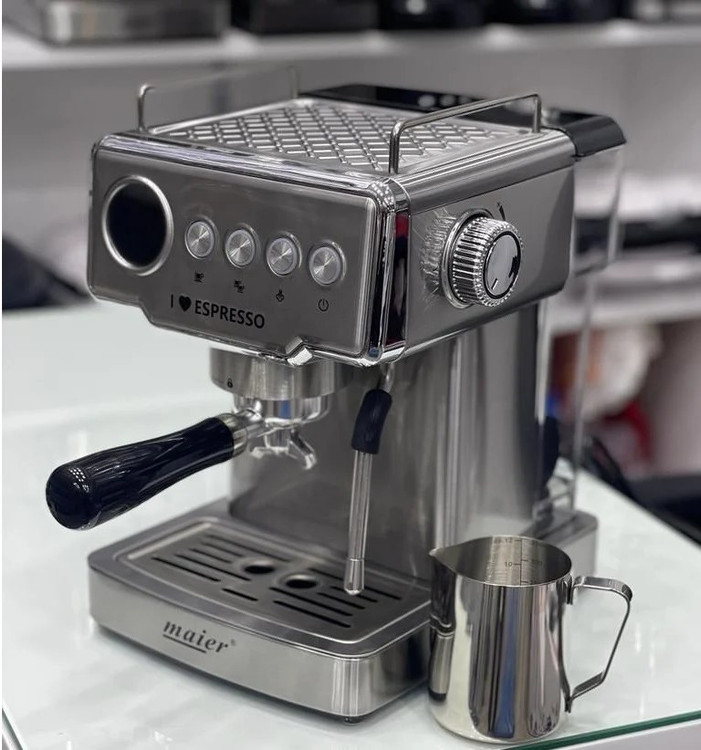 دستگاه اسپرسوساز مایر مدل Maier MR-1771 دستگاهی بسیار زیبا و خوش سیما میباشد که انتخابی مناسب برای مصارف خانگی میباشد. این دستگاه با فشار بخار 20 بار، عصاره گیری بسیار باکیفیتی را انجام میدهد و قهوهای دلچسب را تحویل میدهد. دستگاه MR-1771 با سیستم کف شیر خود، فوم شیر بسیار مخملیای را برای نوشیدنی هایتان درست میکند و میتوانید با استفاده از آن از طعم بینظیر لاته و کاپوچینو لذت ببرید. این محصول همچنین دارای سیستم گرم نگهدار و خاموش شدن خودکار نیز میباشد.