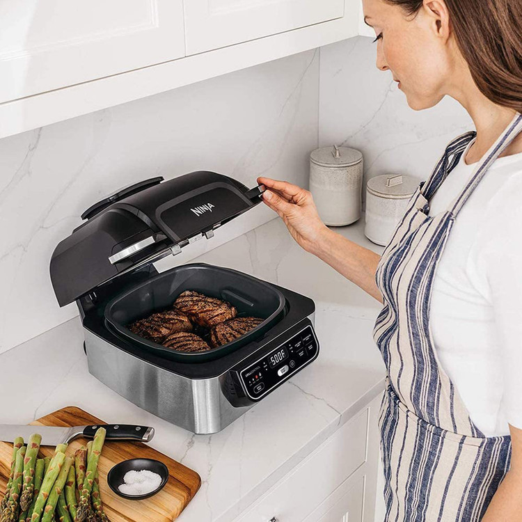کباب کردن: تهیه کباب دیگر تنها مختص روزهای تعطیل و نیازمند وجود باربیکیو نیست. از طریق این عملکرد دستگاه نینجا قادر خواهید بود تا انواع مواد غذایی خود اعم گوشت و مرغ، سیب زمینی و انواع سبزیجات را کباب کنید.
